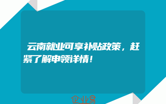 - 云南就业可享补贴政策,赶紧了解申领详情!