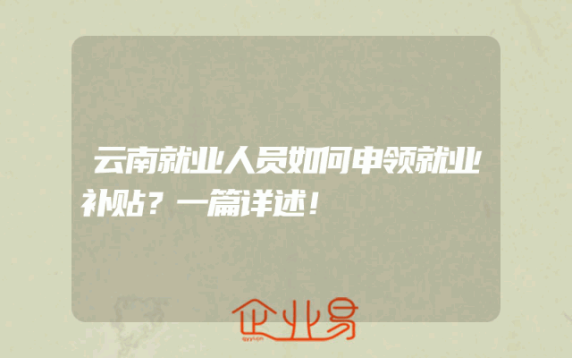 - 云南就业人员如何申领就业补贴?一篇详述!