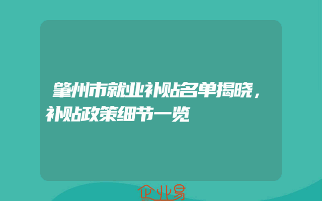 - 肇州市就业补贴名单揭晓,补贴政策细节一览