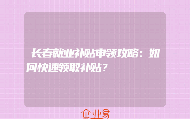 - 长春就业补贴申领攻略:如何快速领取补贴?
