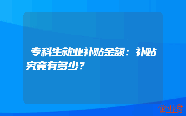 - 专科生就业补贴金额:补贴究竟有多少?