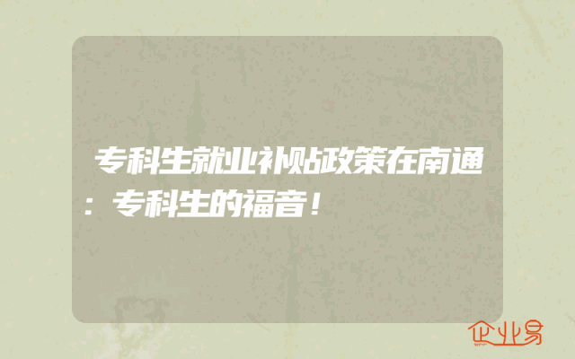 - 专科生就业补贴政策在南通:专科生的福音!