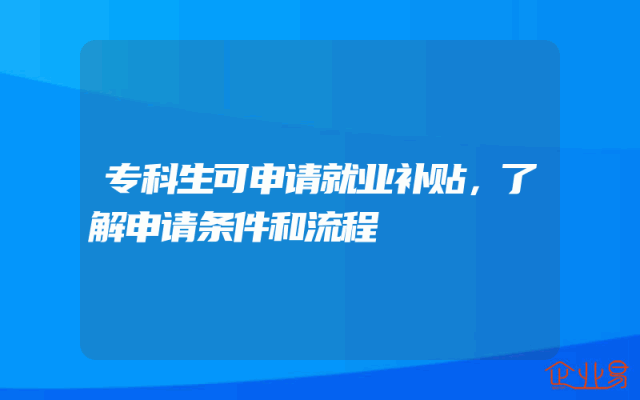 - 专科生可申请就业补贴,了解申请条件和流程
