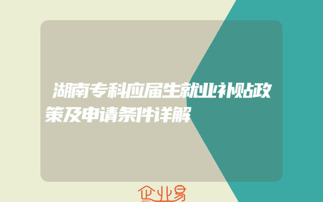 - 湖南专科应届生就业补贴政策及申请条件详解