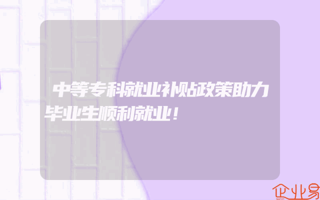- 中等专科就业补贴政策助力毕业生顺利就业!