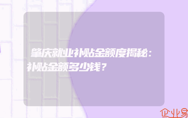 - 肇庆就业补贴金额度揭秘:补贴金额多少钱?