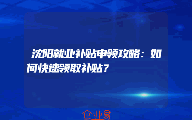 - 沈阳就业补贴申领攻略:如何快速领取补贴?