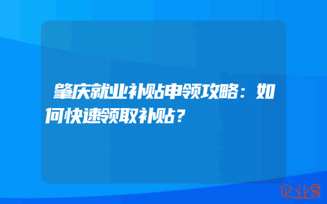 - 肇庆就业补贴申领攻略:如何快速领取补贴?