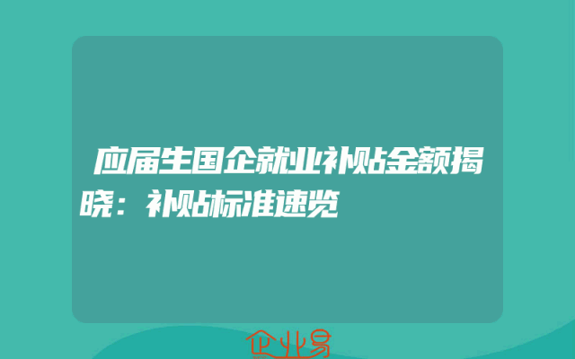 - 应届生国企就业补贴金额揭晓:补贴标准速览