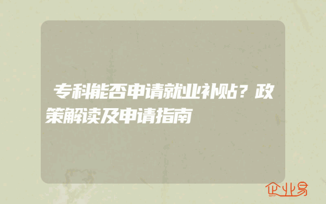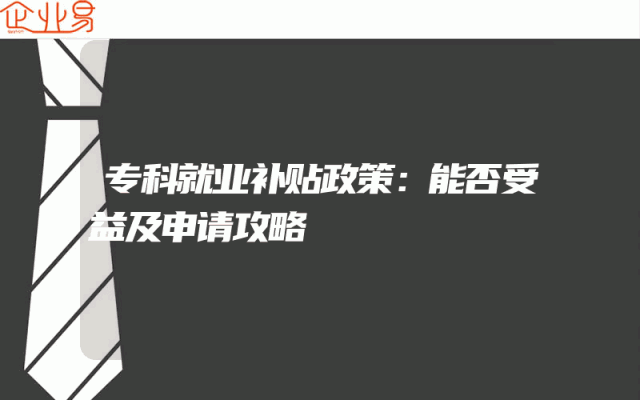 - 专科能否申请就业补贴?政策解读及申请指南一、就业补贴政策概述随着我国高等教育的普及和就业形势的日益严峻,为了鼓励专科毕业生积极就业,各级政府相继出台了一系列就业补贴政策。这些政策旨在减轻专科毕业生的就业压力,提高他们的就业竞争力。二、专科毕