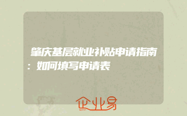 - 肇庆基层就业补贴申请指南:如何填写申请表