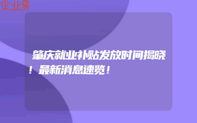 - 肇庆就业补贴发放时间揭晓!最新消息速览!