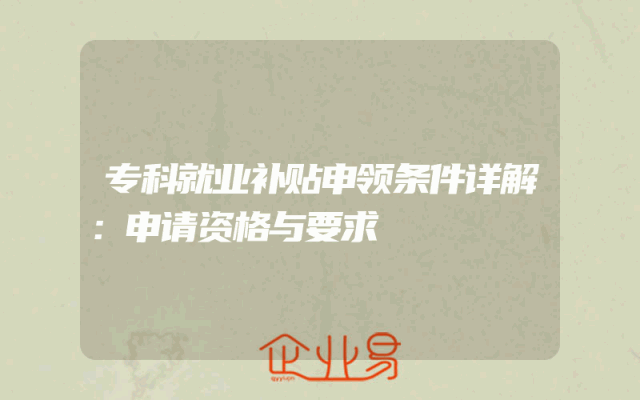 - 专科就业补贴申领条件详解:申请资格与要求