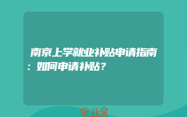 - 南京上学就业补贴申请指南:如何申请补贴?
