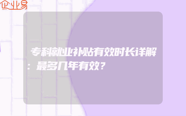 - 专科就业补贴有效时长详解:最多几年有效?