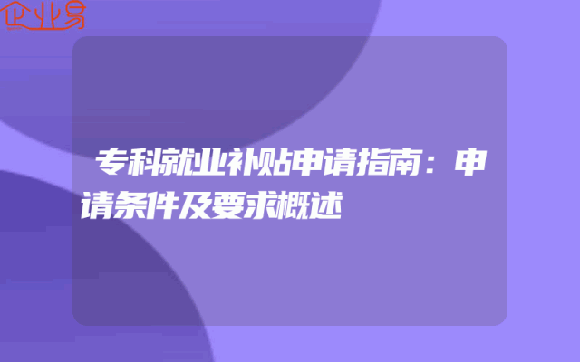 - 专科就业补贴申请指南:申请条件及要求概述