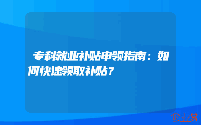 - 专科就业补贴申领指南:如何快速领取补贴?