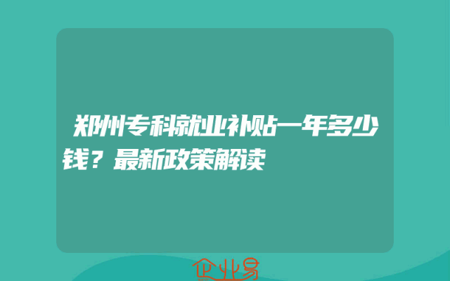 - 郑州专科就业补贴一年多少钱?最新政策解读