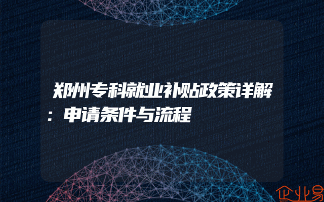 - 郑州专科就业补贴政策详解:申请条件与流程