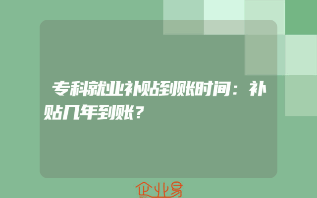 - 专科就业补贴到账时间:补贴几年到账?