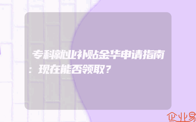 - 专科就业补贴金华申请指南:现在能否领取?