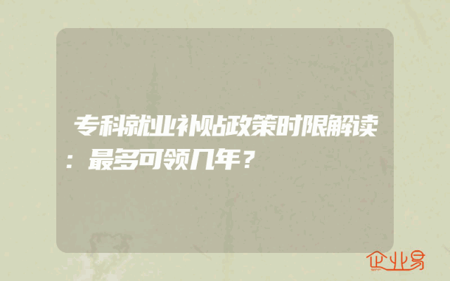 - 专科就业补贴申领年限详解:最多可领几年?