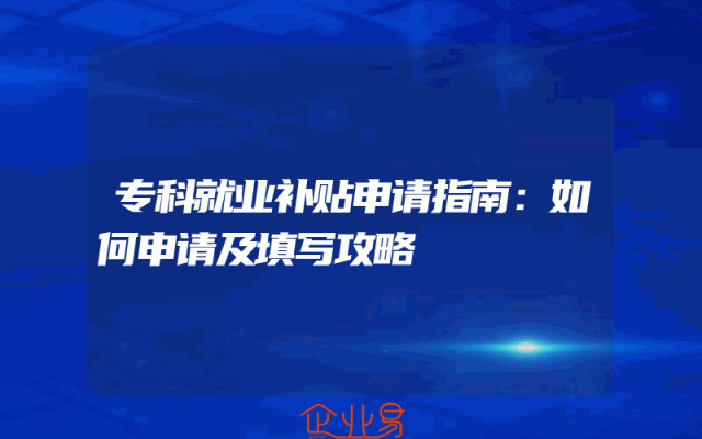 - 专科就业补贴申请指南:如何申请及填写攻略