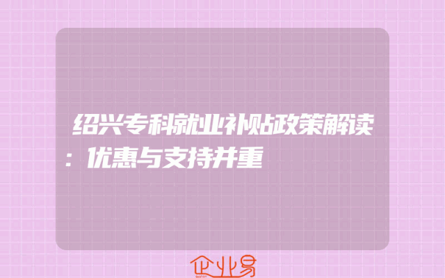 - 绍兴专科就业补贴政策解读:优惠与支持并重