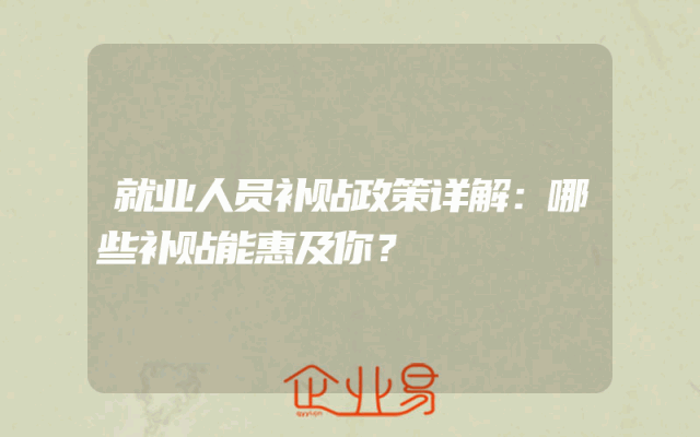 - 就业人员补贴政策详解:哪些补贴能惠及你?