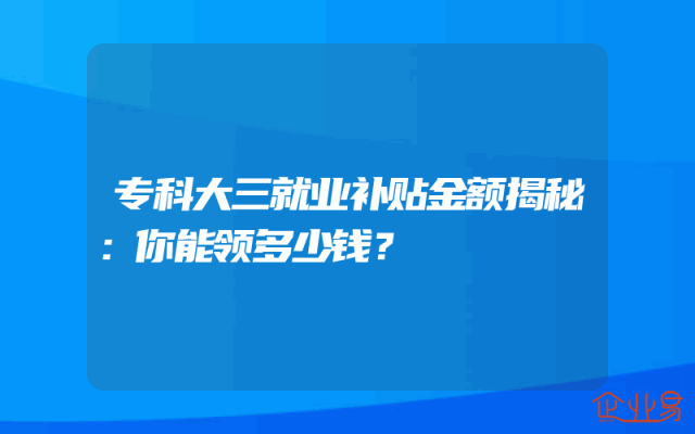 - 专科大三就业补贴金额揭秘:你能领多少钱?