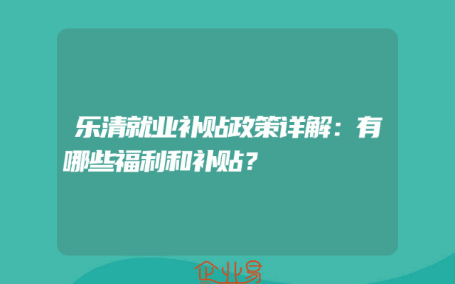 - 乐清就业补贴政策详解:有哪些福利和补贴?