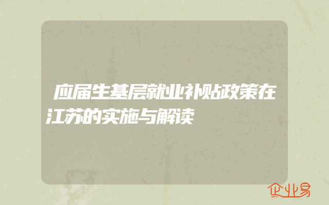 - 应届生基层就业补贴政策在江苏的实施与解读