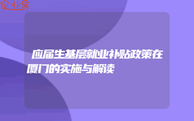 - 应届生基层就业补贴政策在厦门的实施与解读