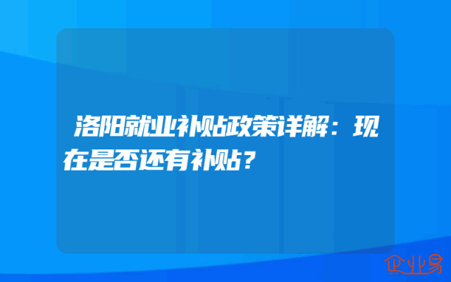 - 洛阳就业补贴政策详解:现在是否还有补贴?
