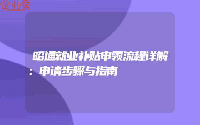 - 昭通就业补贴申领流程详解:申请步骤与指南