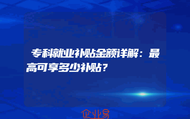 - 专科就业补贴金额详解:最高可享多少补贴?