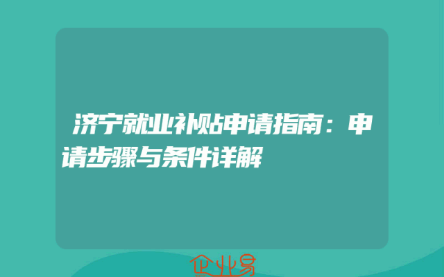 - 济宁就业补贴申请指南:申请步骤与条件详解