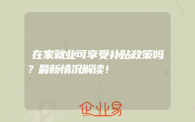 - 在家就业可享受补贴政策吗?最新情况解读!