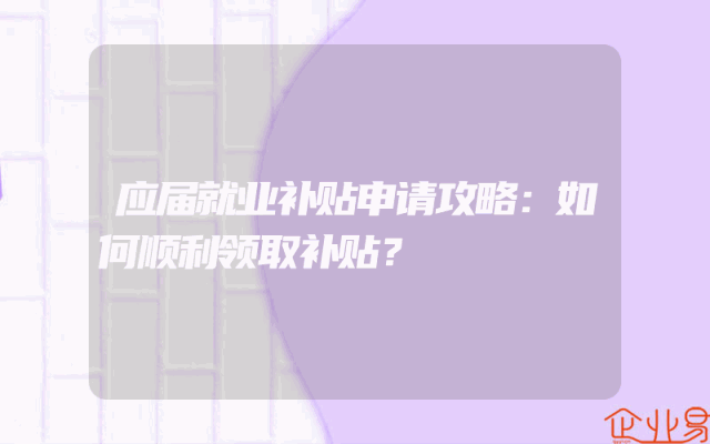 - 应届就业补贴申请攻略:如何顺利领取补贴?