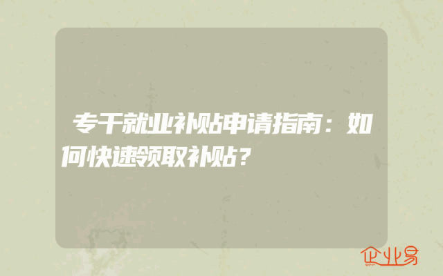 - 专干就业补贴申请指南:如何快速领取补贴?