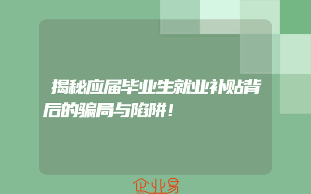 - 揭秘应届毕业生就业补贴背后的骗局与陷阱!