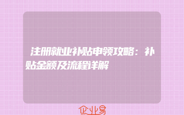 - 注册就业补贴申领攻略:补贴金额及流程详解