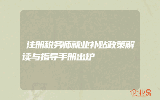 - 注册税务师就业补贴政策解读与指导手册出炉