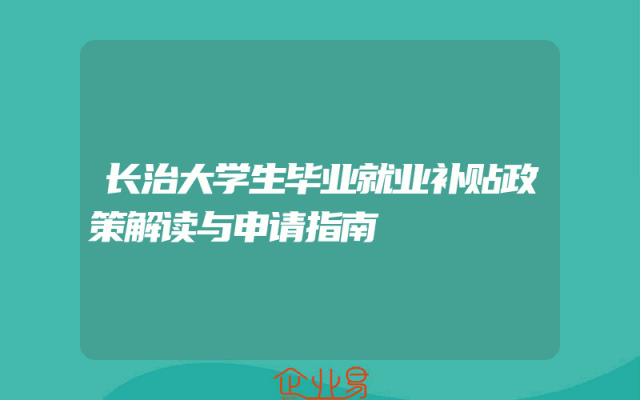 - 长治大学生毕业就业补贴政策解读与申请指南
