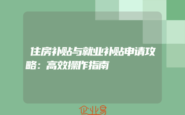 - 住房补贴与就业补贴申请攻略:高效操作指南