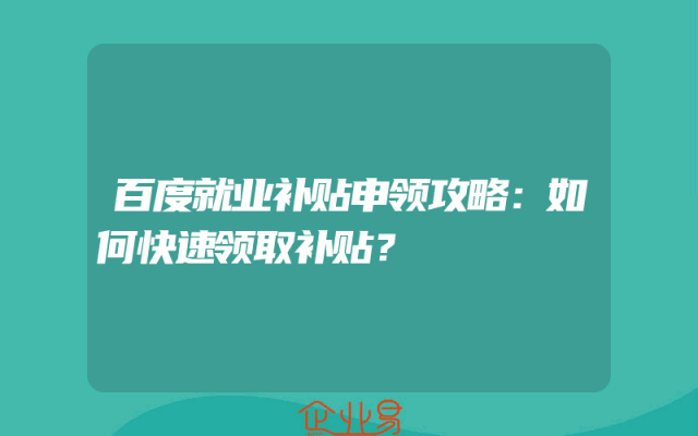 - 百度就业补贴申领攻略:如何快速领取补贴?