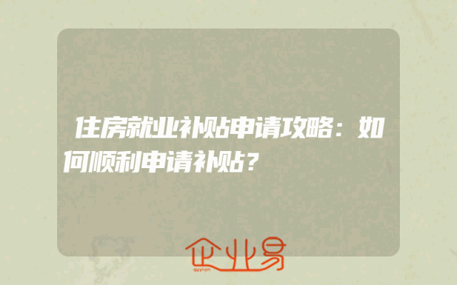 - 住房就业补贴申请攻略:如何顺利申请补贴?