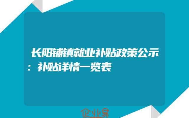 - 长阳铺镇就业补贴政策公示:补贴详情一览表