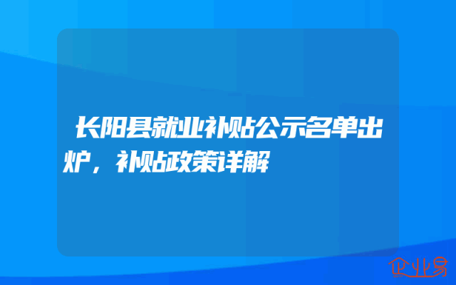 - 长阳县就业补贴公示名单出炉,补贴政策详解