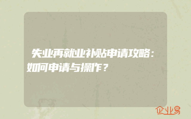 - 失业再就业补贴申请攻略:如何申请与操作?